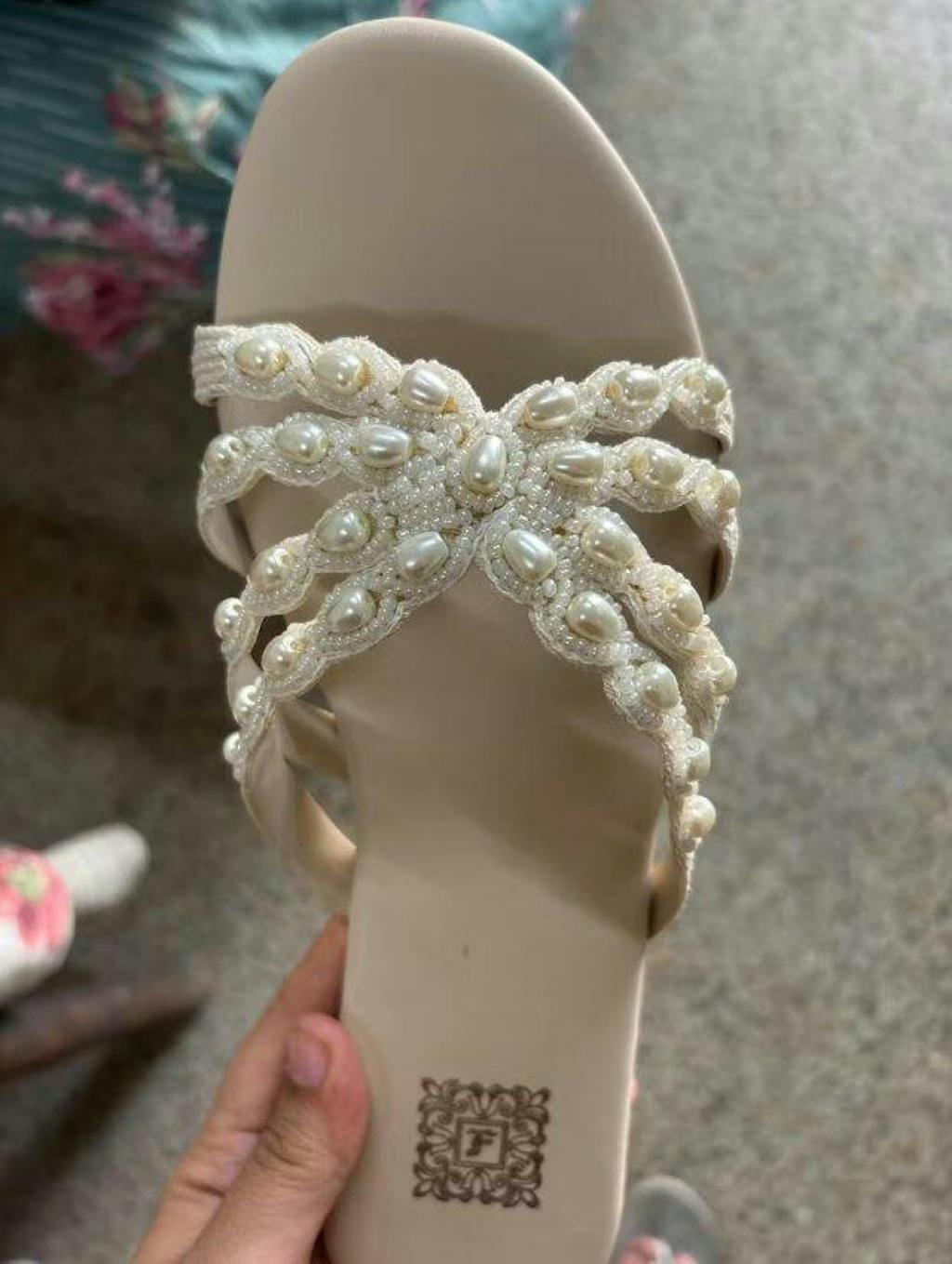 Combine style and comfort with our gorgeous beige slipper, featuring intricate hand-embroidered pearls. Designed with a soft, comfortable sole and lightweight design, this slipper is perfect for dressing up or down.